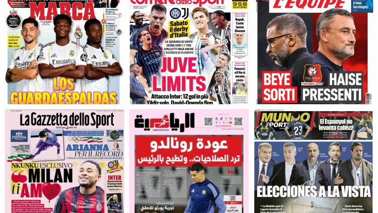استحوذت الاستقالات والتحركات الاستراتيجية على عناوين الصحف الرياضية. كذلك، إيطاليا تستعد لـ “ديربي إيطاليا”. في المقابل، إسبانيا تترقب استقالة خوان لابورتا. ألمانيا تركز على عودة رونالدو المحتملة.